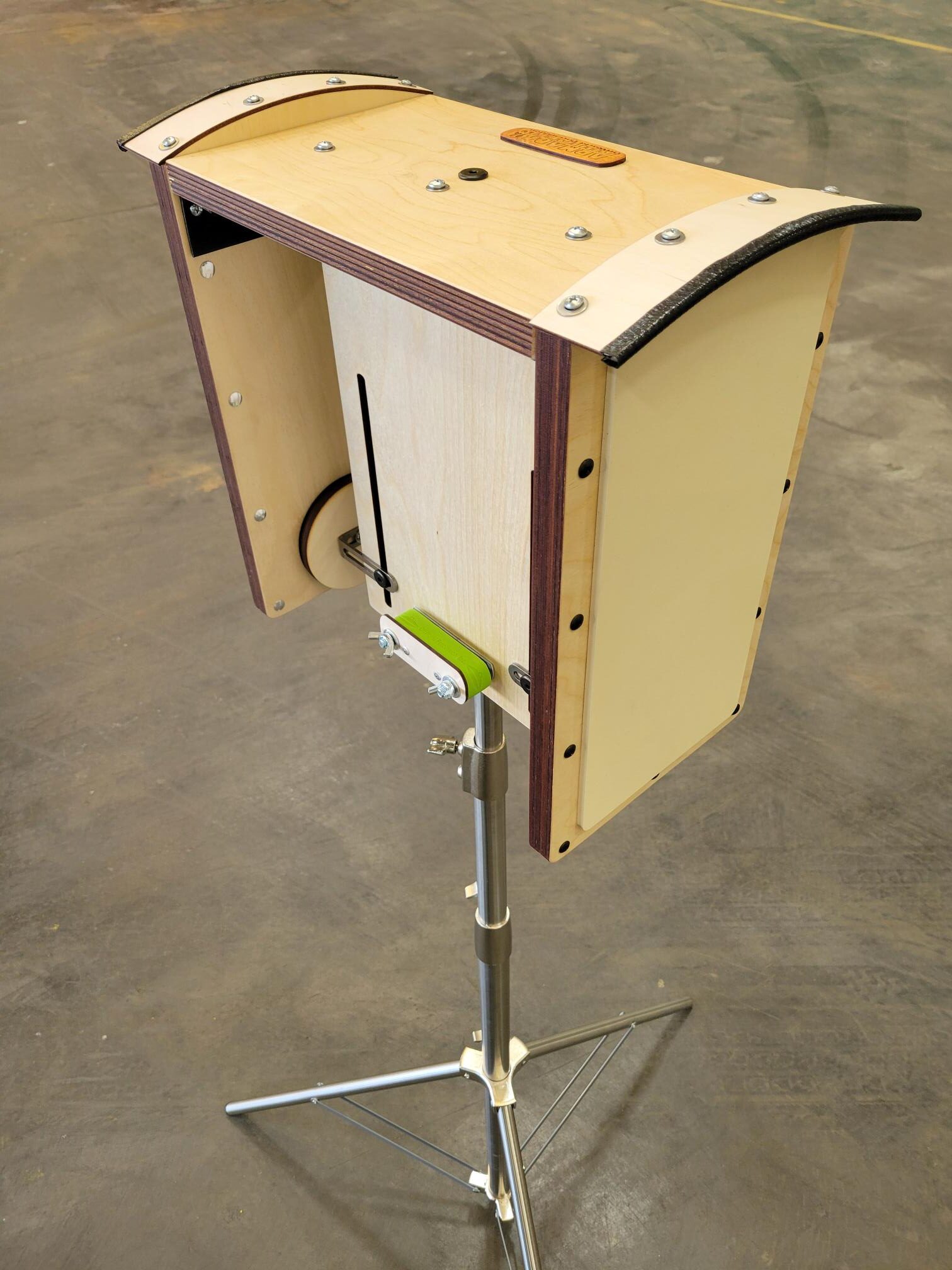- The Armada‘s dual surfaces are mount to, and separated by a central pillar which sets them to the most common bass drum depth of 14 inches.